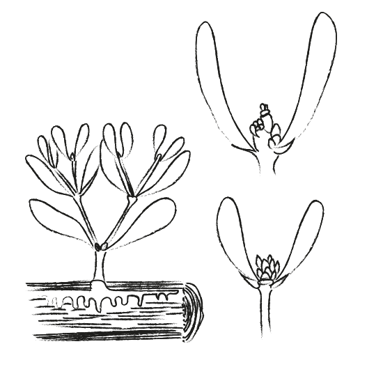 A relative of our mistletoe: Native Hawaiians used this aromatic plant for making boats, perfume and medicine. Soon, it was exploited by incomers and trees were exported to China, for the manufacture of intricately carved furniture.